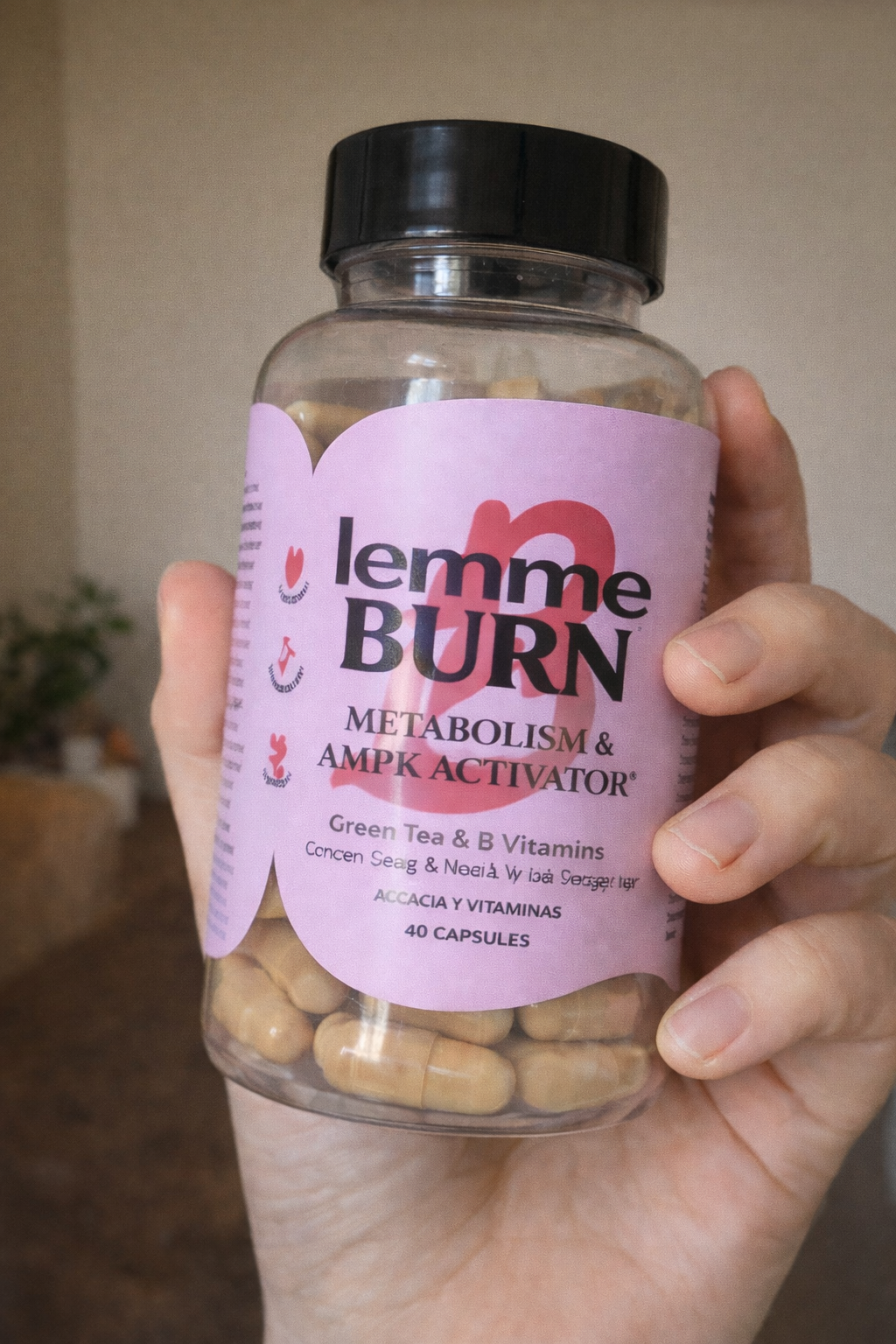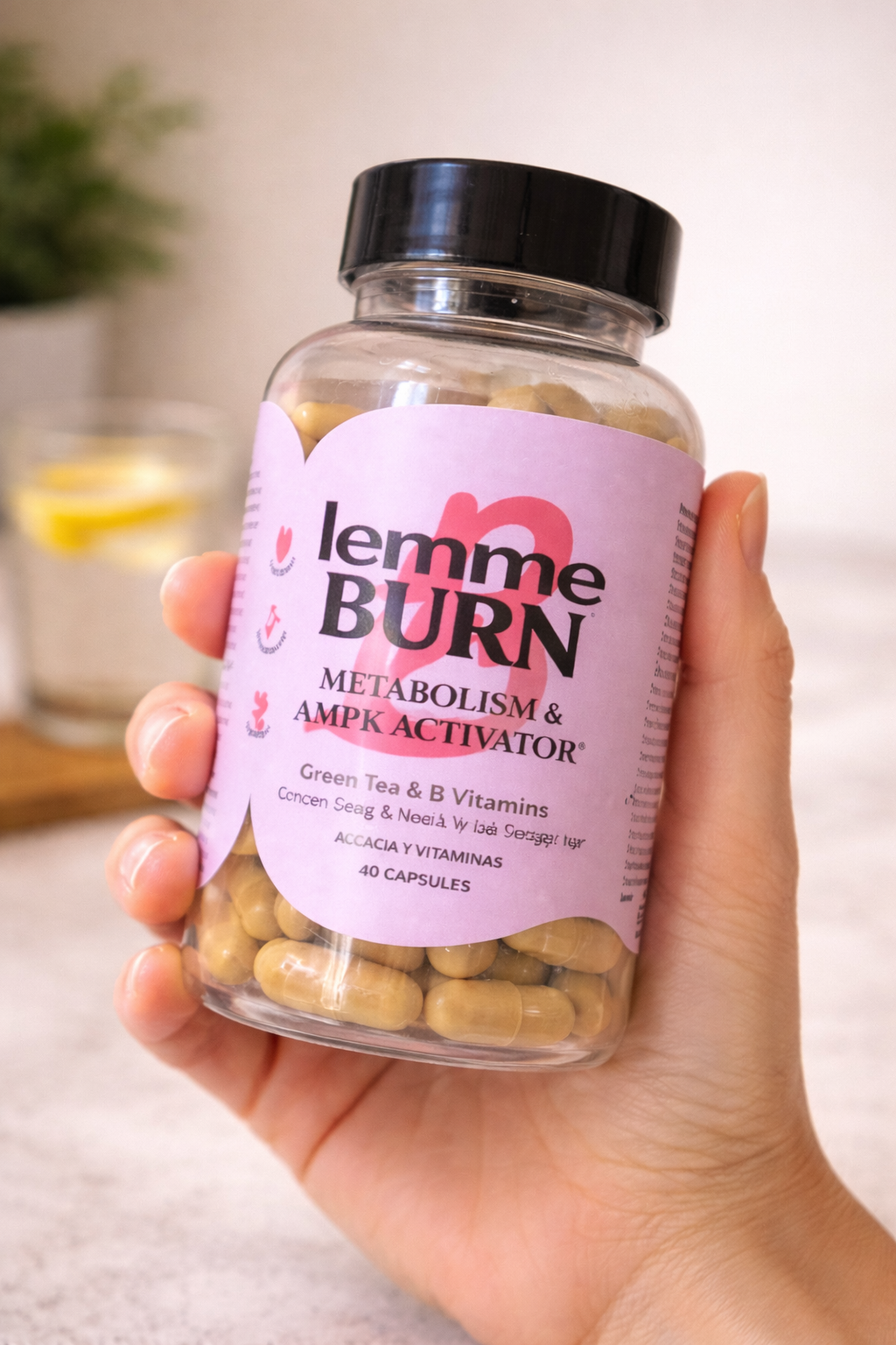 Lemme Burn combina extracto de Té Verde con un complejo de 8 vitaminas que apoyan el metabolismo natural del cuerpo y ayudan a complementar la energía diaria.