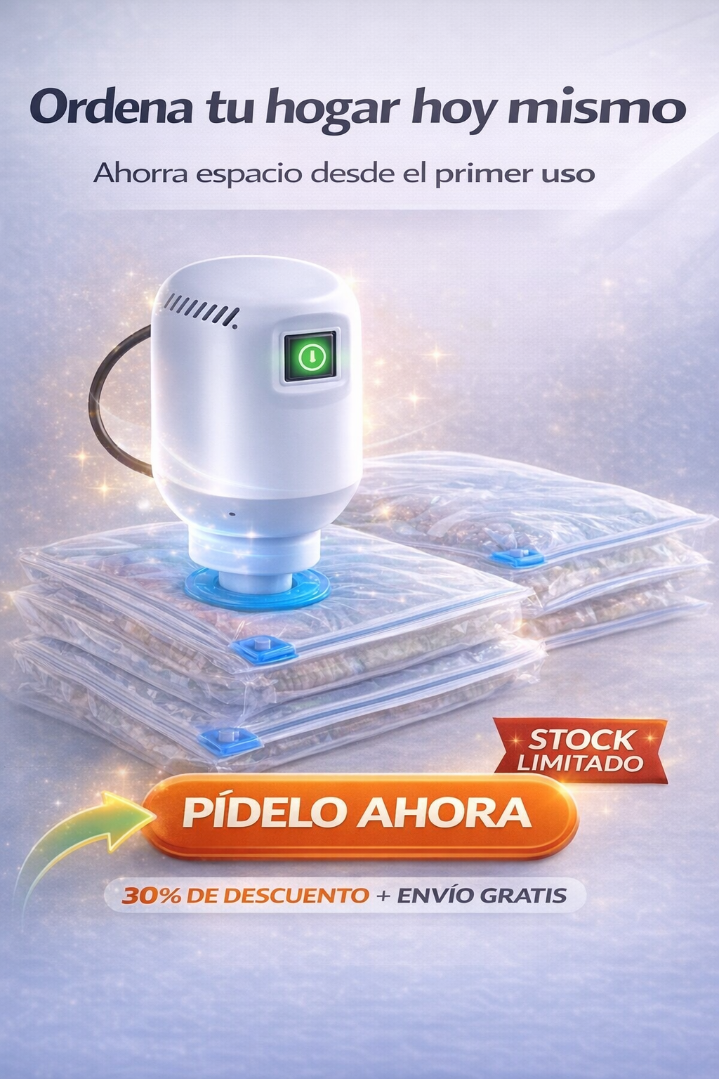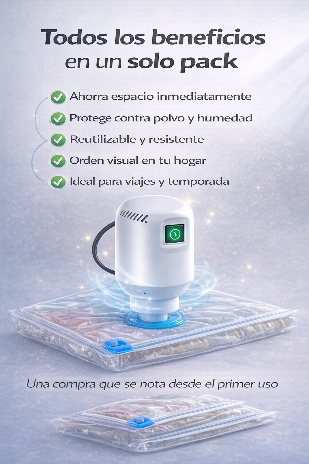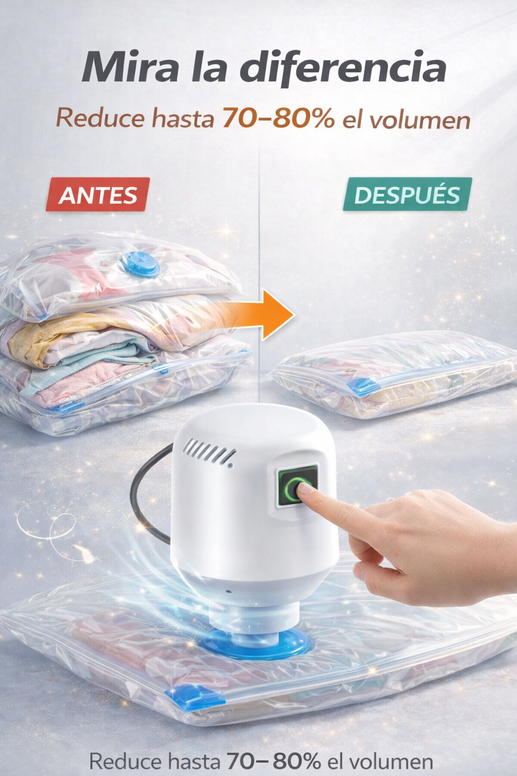Compacta ropa, edredones y almohadas hasta en un 70% con resultados visibles desde el primer uso.