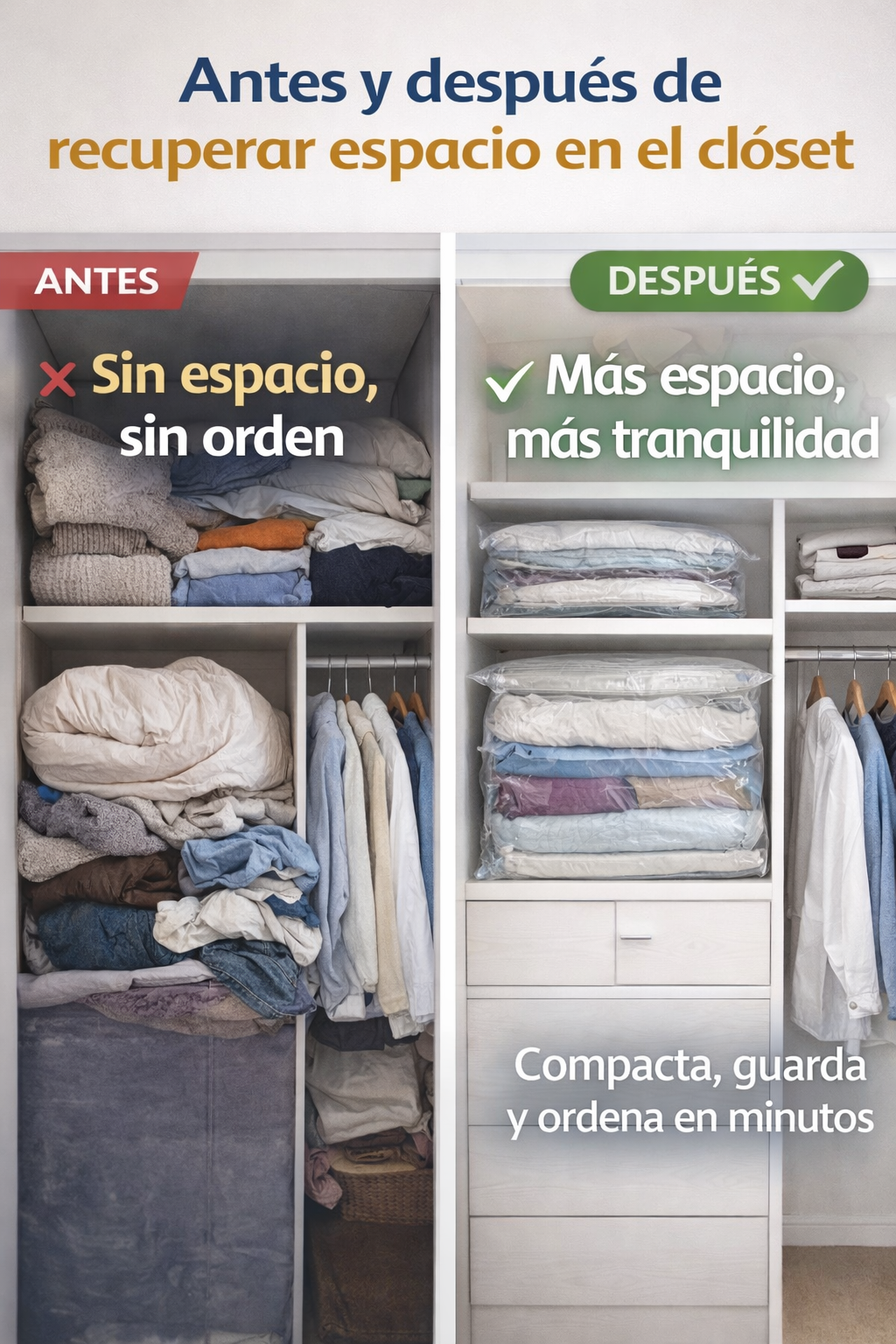 Compacta y guarda ropa en minutos sin reorganizar todo el clóset.